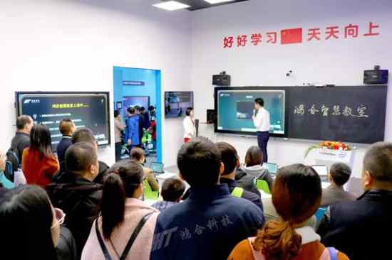 鴻合智慧教室外圍滿(mǎn)老師和參觀者