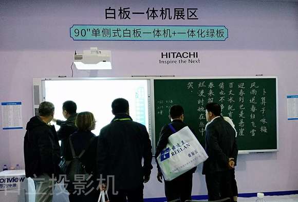 日立投影機(jī)與其合作伙伴——東方中原,呈現(xiàn)多樣交互顯示方案。其中,最引人矚目的當(dāng)屬170英寸電容白板一體機(jī)方案,其由兩臺(tái)日立LCP-A4200W系列投影寬幅大畫面,迎合課堂教學(xué)追求大尺寸畫面的趨勢(shì),實(shí)現(xiàn)業(yè)界領(lǐng)先的獨(dú)特優(yōu)勢(shì)。