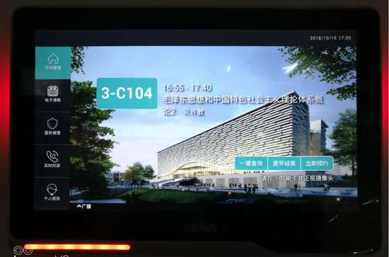 該校共部署智慧班牌58臺,該智慧班牌可實現(xiàn)智慧班牌管理終端,學(xué)校一卡通系統(tǒng)、教務(wù)排課系統(tǒng)等實時對接,通過校園網(wǎng),實現(xiàn)空間的智慧化管理應(yīng)用;老師和學(xué)生可以在終端、APP上快速查找自習(xí)室等自己所需要的教學(xué)空間;空間使用統(tǒng)計分析;考勤統(tǒng)計分析;手動實現(xiàn)考務(wù)場景;教學(xué)服務(wù)保障體系診斷;空間查詢;空間預(yù)約;“小”班牌擁有“大”智慧!