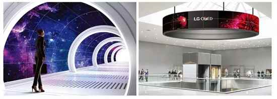 與傳統(tǒng)的大屏顯示產(chǎn)品相比,OLED無(wú)需背光燈,除了包含自身發(fā)光特性所帶來(lái)的輕薄優(yōu)勢(shì),OLED顯示技術(shù)不但可以讓色彩呈現(xiàn)更加自然、色彩層次與對(duì)比度表現(xiàn)得更加鮮明,同時(shí)其柔性特性也讓顯示空間整體造型更加的靈活和創(chuàng)新。