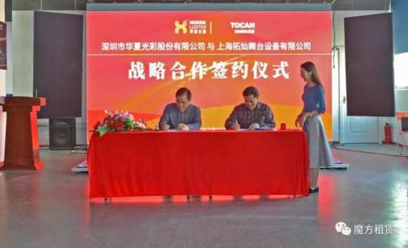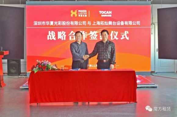 11月29日下午,深圳市 華夏光彩股份有限公司與上海拓燦舞臺設(shè)備有限公司舉行戰(zhàn)略合作簽約儀式 ,此次簽約分別由華夏光彩租賃事業(yè)部鄧?yán)鬣嚳偤蜕虾M貭N舞臺設(shè)備高福啟高總進(jìn)行簽約,此次簽約將分別結(jié)合雙方的生產(chǎn)優(yōu)勢、團(tuán)隊(duì)優(yōu)勢和渠道優(yōu)勢,為LED租賃客戶提供快捷和即時(shí)的專業(yè)服務(wù),一起為華夏光彩租賃事業(yè)助力發(fā)聲。