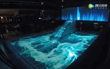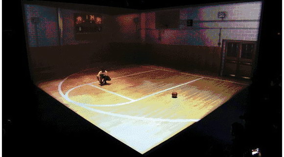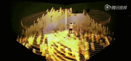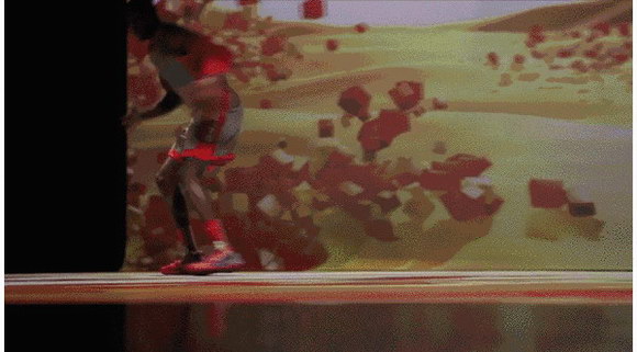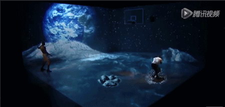 高分辨率的立體投影技術把觀眾帶入到一個完全沉浸式的虛擬環(huán)境之中。同時運動員表演者是非常能“演”的,多次的與影片彩排、磨合才能錄下如此天衣無縫的虛擬互動。