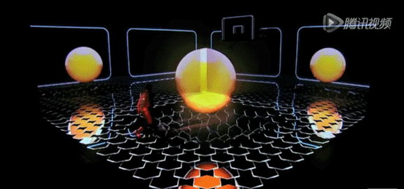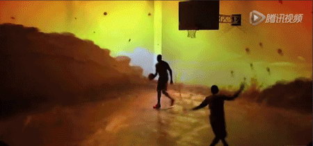 由一個籃球而引發(fā)的的魔幻世界,一圈圈光影將運動員穿越到茫茫沙漠,突然從四面八方飛來的紅色方塊瞬間將表演者包圍,在如此奇異的環(huán)境下堅持完成投籃。