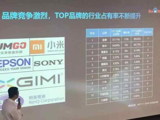 不久前,百度大數(shù)據(jù)平臺(tái)“靈犀”發(fā)布中國智能投影行業(yè)分析數(shù)據(jù)報(bào)告,圍繞品牌影響力、市場占有率、品牌區(qū)域分布等多維度分析現(xiàn)今中國智能投影行業(yè)現(xiàn)狀。數(shù)據(jù)顯示,堅(jiān)果智能投影2018品牌占有率達(dá)39.02%,比2017年增長了11%,打敗了愛普生、明基、索尼等傳統(tǒng)品牌,成為拉動(dòng)整個(gè)行業(yè)的主力軍。