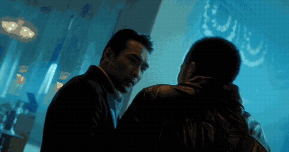 隨著演員的表演,通過攝影機(jī)上下細(xì)微的調(diào)度,使這些鏡頭不只展現(xiàn)出了動作戲的力度,也展現(xiàn)了動作過程中的情緒和情感。而高反差的影調(diào)關(guān)系,讓人物處在大面積的暗影中,這對攝影機(jī)的暗部層次的拍攝還原也是一個考驗(yàn)。