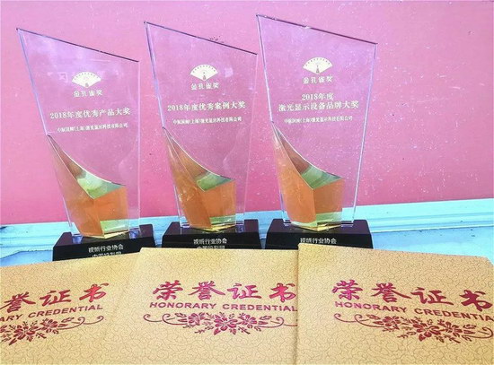 緊接著在思想激烈碰撞的論壇之后,最激動(dòng)人心的行業(yè)獎(jiǎng)項(xiàng)頒獎(jiǎng)結(jié)果最終揭曉,中航國(guó)畫(huà)繼2015、2016、2017年連續(xù)獲得多個(gè)獎(jiǎng)項(xiàng)之后,再次斬獲2018年度激光顯示設(shè)備品牌大獎(jiǎng)、優(yōu)秀案例大獎(jiǎng)和優(yōu)秀產(chǎn)品大獎(jiǎng)3項(xiàng)大獎(jiǎng),可謂實(shí)至名歸。