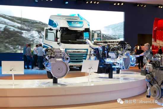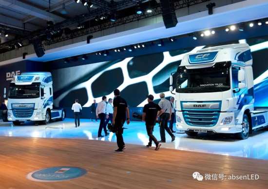 在2500㎡的DAF展位格外引人注目的是艾比森PL2.9打造的LED墻,巨大的高清LED墻主要用于播放DAF卡車的介紹視頻、公司歷史文化以及新聞發(fā)布會(huì)。