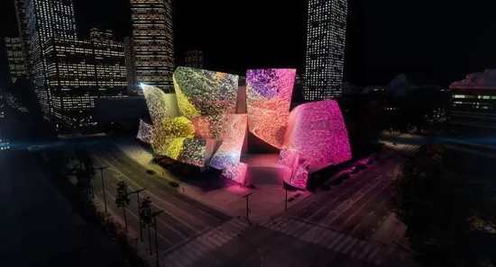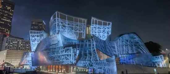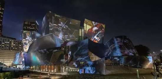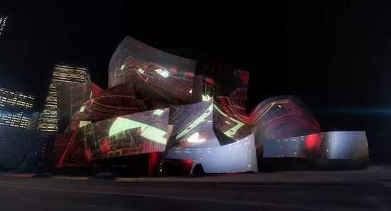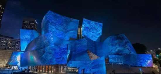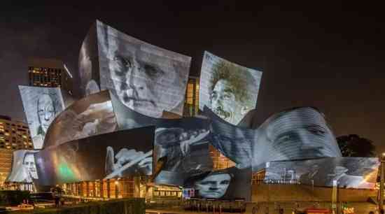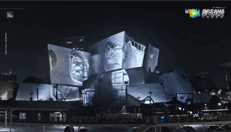 近日,為了紀念洛杉磯愛樂樂團成立100周年,在洛杉磯的標志性建筑華特•迪士尼音樂廳(Walt Disney Concert Hall)的外立面上上演了一場三維投影的夢幻燈光秀。