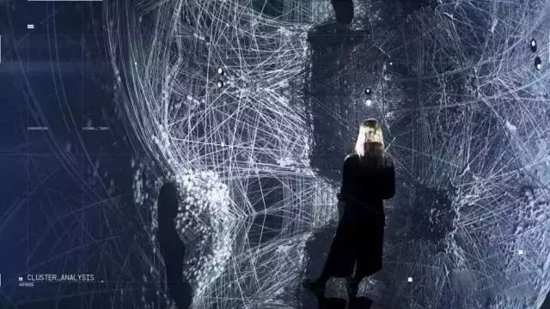 Refik Anadol與Google合作,打造的另一件將數(shù)據(jù)可視化的藝術作品《夢想檔案館》(Archive Dreaming)也是一件震撼人心的藝術裝置,以藝術館的170萬個文檔作為數(shù)據(jù)源,通過特殊的編程方式實時渲染出170萬張圖像。