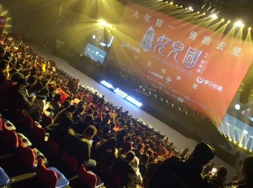 來自北京地區(qū)的1000多名影迷齊聚一堂,首映搭配中國巨幕激光放映系統(tǒng),在近30米的巨型銀幕上,特有的中國巨幕母版