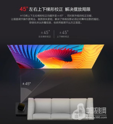 如果你在房子裝修時,并沒有預(yù)留智能影院的安裝位置,那么在選購時,請選擇帶有“梯形校正”功能的智能影院。具備這個功能的智能影院在安裝上就要方便許多,不需要正對墻面,即使是從側(cè)面投向墻面,畫面依然可以調(diào)整至方正。