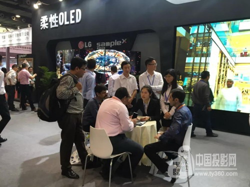 外國(guó)采購(gòu)商對(duì)高科技OLED顯示技術(shù)頗感興趣,現(xiàn)場(chǎng)進(jìn)行項(xiàng)目洽談。