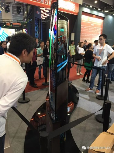 走進(jìn)賽普科技展臺(tái),首先映入眼簾的是絢麗奪目的65寸雙面曲面波紋拼接標(biāo)牌顯示器,其完美出色的畫質(zhì)和革命性的纖薄設(shè)計(jì),為顯示功能大大增添了藝術(shù)價(jià)值。這款雙曲面拼接是由8塊65寸曲面屏拼接而成,單塊65寸顯示器分辨率就達(dá)到了4K,也就是說(shuō)整個(gè)顯示器的分辨率高達(dá)32K,360°觀看角度無(wú)死角,是整個(gè)展位的點(diǎn)睛之筆。
