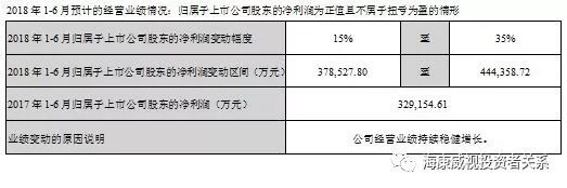 對2018年1-6月經(jīng)營業(yè)績的預(yù)計