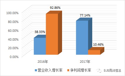 就成長(zhǎng)情況來(lái)說(shuō),公司2017年?duì)I業(yè)收入增長(zhǎng)率77.14%, 2016年則為38.33%;凈利潤(rùn)增長(zhǎng)率2017年為10.46%,2016年則為92.86%。不難看出,在經(jīng)歷了2016年的成長(zhǎng)小高峰后,公司逐漸進(jìn)入穩(wěn)健成長(zhǎng)階段。