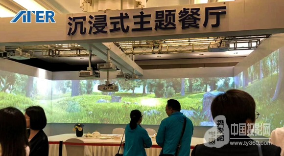 “主題餐廳”分會場采用AGT-Z展館系列數(shù)字高清融合器與9臺投影機(jī)5500lm/WXGA搭建沉浸式系統(tǒng)。該系統(tǒng)正前方使用3臺投影機(jī),左邊和右邊各使用2臺投影機(jī),地面使用2臺投影機(jī),通過這樣的投影融合設(shè)計(jì),打造沉浸式更佳的餐廳,獲取震撼的呈現(xiàn)效果。當(dāng)然,AGT-Z展館系列數(shù)字高清融合器針對展館特征設(shè)計(jì),采用可熱插拔式的模塊化設(shè)計(jì),用戶可根據(jù)實(shí)際自由選配,單臺設(shè)備可分別支持多達(dá)10、18、36臺投影機(jī)融合,適用于展覽展示、虛擬仿真、幾何投影等展館場景,滿足各種超高清展示、模擬仿真應(yīng)用的數(shù)據(jù)完美整合呈現(xiàn)。