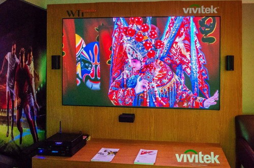 除了HK2288,去年上市的Vivitek(麗訊)超短焦激光投影機(jī)DH765Z-UST也受到了現(xiàn)場(chǎng)觀眾的廣泛關(guān)注,它采用了使用壽命長(zhǎng)達(dá)20000小時(shí)以上的激光光源,擁有0.233:1超短焦投射比,54厘米的距離即可投射出100寸超大畫面,放置于電視柜上即可使用,為空間有限的家庭用戶提供了理想選擇。性能方面,DH765Z-UST擁有4000流明亮度、30000:1高對(duì)比度、支持1080P原始分辨率和全格式3D,符合Rec.709色域標(biāo)準(zhǔn),提供逼真的色彩還原,在客廳中便可輕易實(shí)現(xiàn)震撼的影院級(jí)效果,2.35:1縱橫比畫面比例更是打造出原汁原味的好萊塢大片視覺(jué)效果。