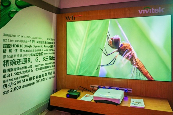 Vivitek(麗訊)在本屆SIAV 2018展會(huì)上展出了多款家用投影機(jī)產(chǎn)品,包括超短焦激光投影機(jī)DH765Z-UST、4K家用投影機(jī)HK2288,以及影吧機(jī)型DH558、短焦全高清家用投影機(jī)DH559ST、HIFI級(jí)準(zhǔn)高端家庭影院投影機(jī)H5095等,并全部搭配甲譜真影院幕布等相關(guān)設(shè)備,從入門級(jí)投影到準(zhǔn)高端家庭影院機(jī)型一應(yīng)俱全,滿足了目前個(gè)人和家用投影市場(chǎng)大部分用戶的不同需求。