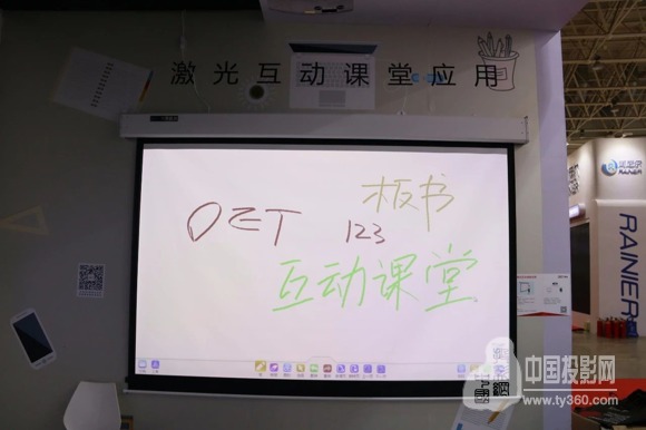 激光互動(dòng)課堂應(yīng)用:DET-5W(選配0.505短焦鏡頭)+120寸書寫幕
