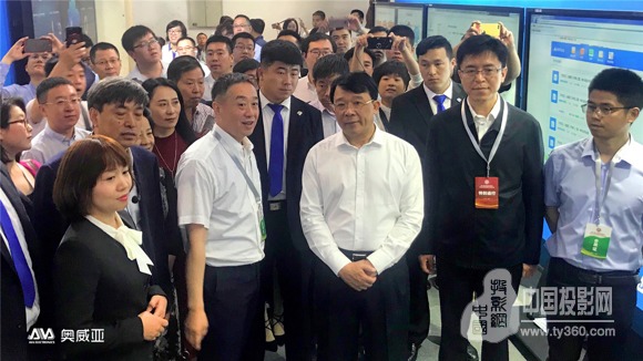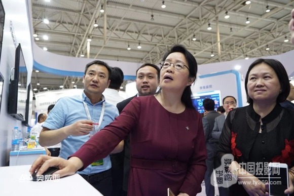 圖二:中央電化教育館館長王珠珠(圖右二)參觀奧威亞移動錄播展示區(qū)