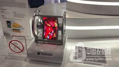 此次天馬展出多款柔性產(chǎn)品,其中這款5.99英寸18:9外彎折疊的全面屏,屏幕的上、左、右均為0.85 mm的窄邊框,搭配雙排COF設計,具有超高屏占比,彎折半徑為5 mm,彎折角度可達0~180,模組厚度更是小于0.25 mm,分辨率為2160×1080,解析度達到真正的FHD 403 PPI。