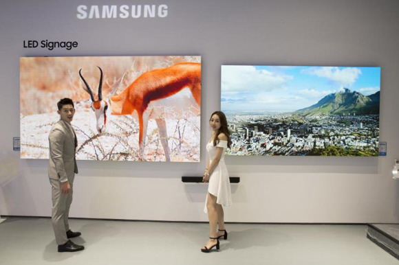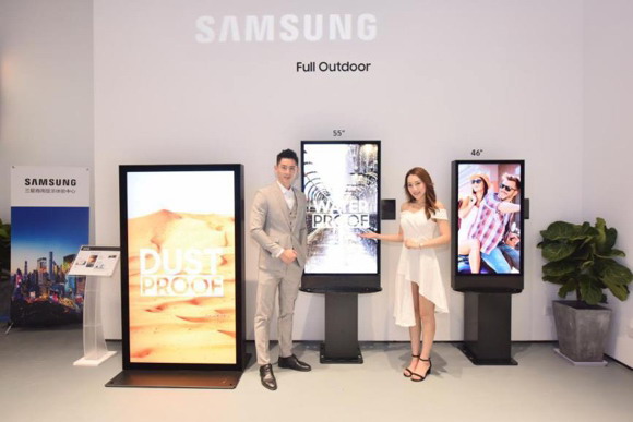 此外,戶外屏區(qū)域,三星全戶外液晶顯示器不僅擁有防反射、防偏光鏡失明的高可視性,而且具備 IP56防護(hù)等級(jí)的高防護(hù)性,無須配備空調(diào)即可在-30至50度的環(huán)境溫度下正常運(yùn)行的高可靠性。可雙面顯示廣告內(nèi)容的三星雙面全戶外標(biāo)牌,以及三星半戶外顯示屏,為戶內(nèi)外零售展示提供了更加多樣化的選擇。