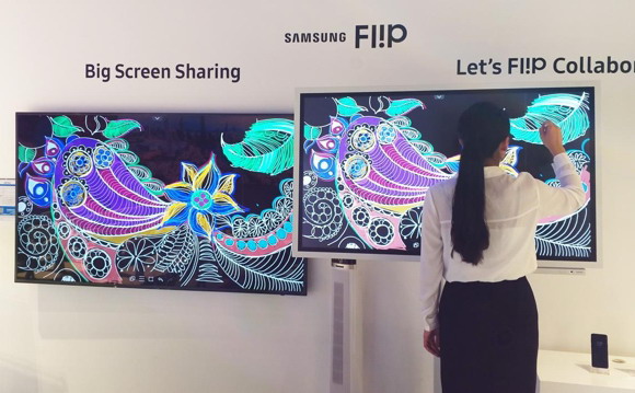 畫師在三星智能互動(dòng)電子白板Flip上作畫