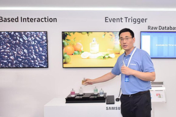 三星MI解決方案,讓購物不僅突破了固有的模式,同時也更加個性化、便捷化。設想一下這樣的場景:大型商場的奢侈品區(qū),當人們拿起不同款式、顏色的香水時,屏幕內(nèi)馬上就會顯示出產(chǎn)品的詳細信息和高清漂亮的圖像,人們還可以選擇自己想要購買的產(chǎn)品,進行移動支付。而這就是三星MI解決方案的事件觸發(fā)式互動功能在無人產(chǎn)品介紹專柜中的應用。