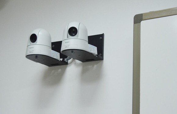 另一個教室是全自動錄播系統(tǒng)教室,配備了索尼LRS-1全自動錄播系統(tǒng),教室前、后分別安裝了兩組共4臺云臺攝像機,拍攝角度全面覆蓋,老師可以隨時輕松切換視角與遠景/近景。