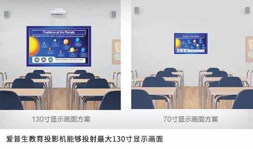 愛普生教育投影機(jī)最大能夠投射出130英寸大畫面,讓坐在后排的學(xué)生也能夠輕松看清課件內(nèi)容。大尺寸的畫面所呈現(xiàn)的精彩課程,在為師生帶來高效的教學(xué)體驗(yàn)的同時(shí),也幫助師生解決用眼過度難題。