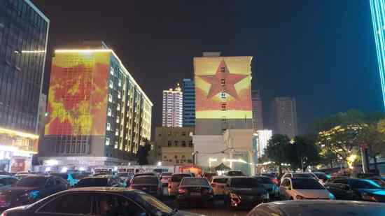 南昌火車站站前路兩棟樓體建筑,DET 6臺18000流明的激光工程投影機(jī)通過投影方式,結(jié)合建筑的外形與構(gòu)造,把畫面直接投射到建筑的立面上,呈現(xiàn)獨(dú)特的光影效果的燈光秀形式。