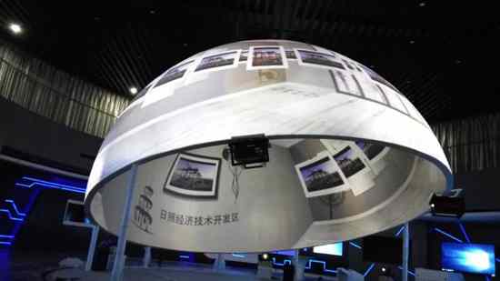 日照經(jīng)濟(jì)技術(shù)開發(fā)區(qū)科技孵化中心優(yōu)質(zhì)企業(yè)共享展廳成立,12臺DET 8500流明投影機(jī)打造的半球穹頂式投影,全面展示黨建、旅游、教育、科技各行業(yè)發(fā)展特色,現(xiàn)場營造出超震撼的動態(tài)視覺效果。
