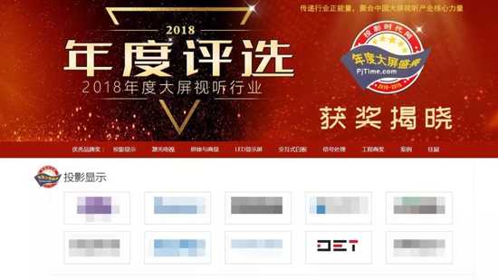 2018年度大屏視聽行業(yè)年度評選舉行,DET德浩再次獲得“投影十大品牌”獎項