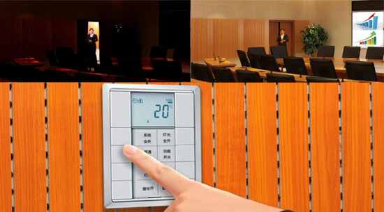 影院式網(wǎng)呈集成會議智能觸控操作,支持一鍵開關整套系統(tǒng),實現(xiàn)對聲、光、電等設備的智能管理,同時,燈光自動感應與會者出入,設計人性化、管理智能化。