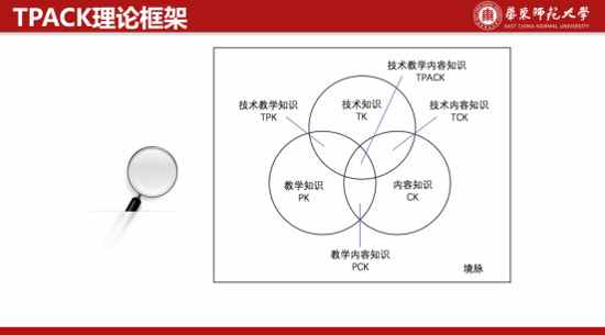 對于我們教師技術(shù)的整合能力來說,我們也可以參考一下tpack框架。全稱是technological pedagogical and content knowledge,可譯為“整合技術(shù)的學(xué)科教學(xué)知識”,是指技術(shù)、教學(xué)法、學(xué)科知識三者互動、融合后形成的多種新的復(fù)合知識。