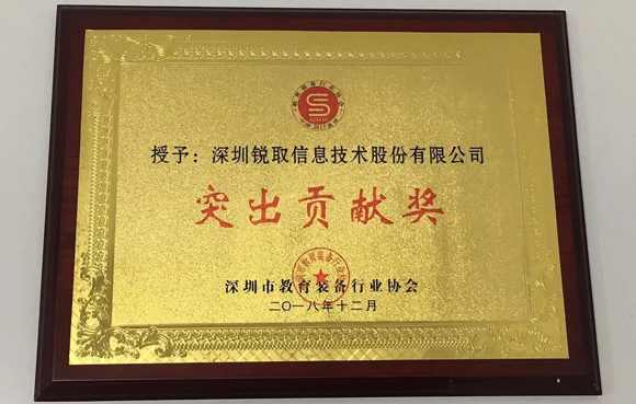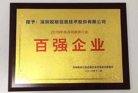 2018年12月,深圳市教育裝備行業(yè)協(xié)會一屆二次會員代表大會暨一屆三次理事會在深圳市五洲賓館隆重舉行,銳取榮獲“深圳教育百強(qiáng)企業(yè)”榮譽(yù)稱號,協(xié)會及眾會員單位對銳取在2018年度為教育信息化所做出的努力表示了肯定。