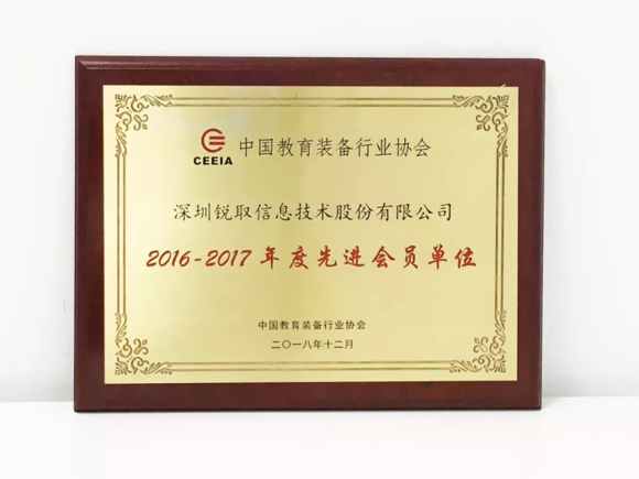 2018年12月,銳取被評為2016一2017年度“中國教育裝備行業(yè)協(xié)會先進(jìn)會員單位”,這是各級政府、協(xié)會對銳取技術(shù)創(chuàng)新能力和優(yōu)質(zhì)服務(wù)水平的肯定和認(rèn)可,標(biāo)志著銳取已進(jìn)入全國教育裝備先進(jìn)行列和第一方陣,為下一步在教育裝備領(lǐng)域發(fā)揮更大的擔(dān)當(dāng)作為,開展更加廣泛的服務(wù)打下了堅(jiān)實(shí)基礎(chǔ)!