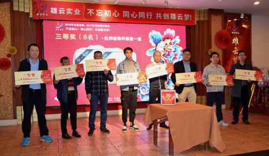 雄云實(shí)業(yè)2019年年會(huì)圓滿落幕,我們滿懷敬意,滿懷感激,恭喜每一位獲獎(jiǎng)的員工,也向全公司所有員工送上最誠(chéng)摯的感謝!沒有各位的付出,就沒有雄云蒸蒸日上的發(fā)展,展望明天,我們將用奮斗塑造雄云更加輝煌的未來(lái)!2019年我們雄云夢(mèng)起航,雄云祝大家2019年“行大運(yùn),發(fā)大財(cái)” !