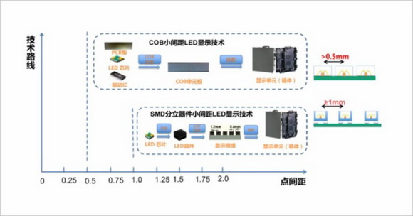 SMD小間距顯示與COB微間距顯示能實(shí)現(xiàn)的點(diǎn)間距范圍比較