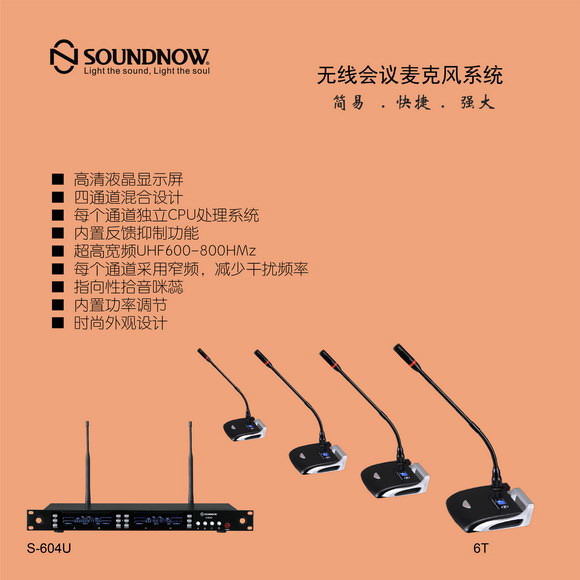 廣州聲諾電子有限公司2010年成立,設(shè)立于廣州番禺,集研發(fā)、生產(chǎn)、銷售及服務(wù)于一體,專注SOUDNOW(聲諾)品牌在中國的推廣及服務(wù),產(chǎn)品包括專業(yè)舞臺無線話筒,專業(yè)KTV話筒,智能數(shù)字會議系統(tǒng)及無線電子音頻產(chǎn)品,應(yīng)用于舞臺演出,KTV,會堂,學(xué)校,家庭娛樂及個人消費(fèi)類等。