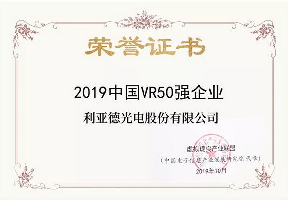 10月19日,由工信部和江西省人民政府聯合主辦的“2019世界VR產業(yè)大會”在江西南昌開幕。根據中國電子報、電子信息產業(yè)網發(fā)布的名單,利亞德上榜“2019中國VR50強企業(yè)”,同時上榜的還有百度、科大訊飛等企業(yè)。