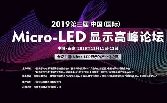 在中國光學(xué)光電子行業(yè)協(xié)會(huì)液晶分會(huì)、中國半導(dǎo)體照明/LED產(chǎn)業(yè)與應(yīng)用聯(lián)盟、中國電子材料行業(yè)協(xié)會(huì)、中國光學(xué)光電子行業(yè)協(xié)會(huì)發(fā)光二極管顯示應(yīng)用分會(huì)、南京平板顯示行業(yè)協(xié)會(huì)、臺(tái)灣顯示器產(chǎn)業(yè)聯(lián)合總會(huì)和廣東省Micro-LED微顯示產(chǎn)業(yè)技術(shù)創(chuàng)新聯(lián)盟的共同努力下,橫跨顯示、LED、半導(dǎo)體三大領(lǐng)域的“中國(國際)Micro-LED顯示高峰論壇”已成功舉辦過兩屆,引起了業(yè)界的熱烈反響,引導(dǎo)并加快了我國Micro-LED技術(shù)和產(chǎn)業(yè)的發(fā)展。為此,由七家行業(yè)協(xié)會(huì)和中國電子技術(shù)標(biāo)準(zhǔn)化研究院聯(lián)合主辦、南京經(jīng)濟(jì)技術(shù)開發(fā)區(qū)管理委員會(huì)、中國半導(dǎo)體行業(yè)協(xié)會(huì)、南京華東電子信息科技股份有限公司、中國電子科技集團(tuán)公司第五十五研究所國家平板顯示工程技術(shù)研究中心共同協(xié)辦、華夏幸;鶚I(yè)股份有限公司戰(zhàn)略合作、上海舜聯(lián)文化傳播有限公司承辦的“2019第三屆中國(國際)Micro-LED顯示高峰論壇”將于2019年12月11-13日在中國南京隆重召開。