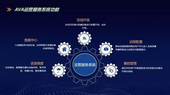 奧威亞運營服務系統(tǒng)以“區(qū)域直播、互動資源調控”為核心,能同步實現(xiàn)“錄播數(shù)據(jù)中心”、“錄播遠程運維”、“錄播集控中心”等作用,極大地提高區(qū)域錄播資源整合能力,最大限度地保持設備的常態(tài)化運行,為各區(qū)域的教學工作靈活開展,提供了更堅實的保障。