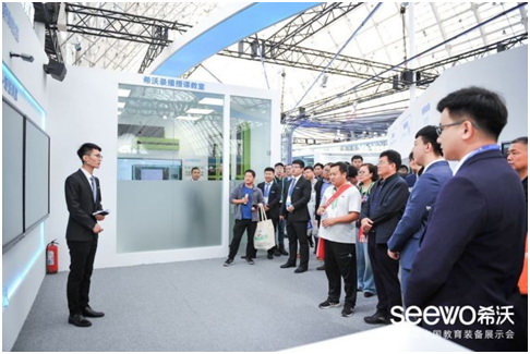 展會期間,希沃交互智能錄播憑借雙向互動(dòng)、跨越時(shí)空、簡單易用等優(yōu)勢深受現(xiàn)場觀眾青睞,不少觀眾紛紛停下腳步深入了解。