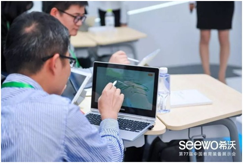 展會現(xiàn)場,2019國際教育信息化大會同期舉行,并由山東教育衛(wèi)視同步直播。此次大會以“技術(shù)賦能教育,創(chuàng)新引領(lǐng)未來”為主題,著重從“人工智能時(shí)代的智慧教育”和“技術(shù)助力教育均衡發(fā)展”兩個(gè)議題入手,組織高校專家學(xué)者、著名企業(yè)代表等共同探討和交流,希沃作為代表企業(yè)參與了此次大會。