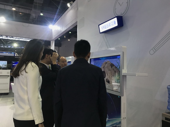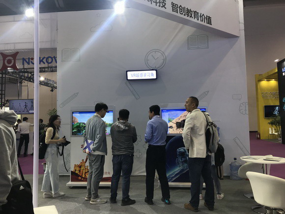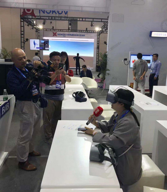 在此次展會(huì)上,威爾文教打造的VR超感教室以其生動(dòng)形象、自然交互的特點(diǎn)吸引了眾多與會(huì)者參與體驗(yàn),通過講師的引導(dǎo)式講解,讓與會(huì)者能夠沉浸其中,遨游知識(shí)的海洋。更有江西5套記者現(xiàn)場(chǎng)體驗(yàn)采訪。