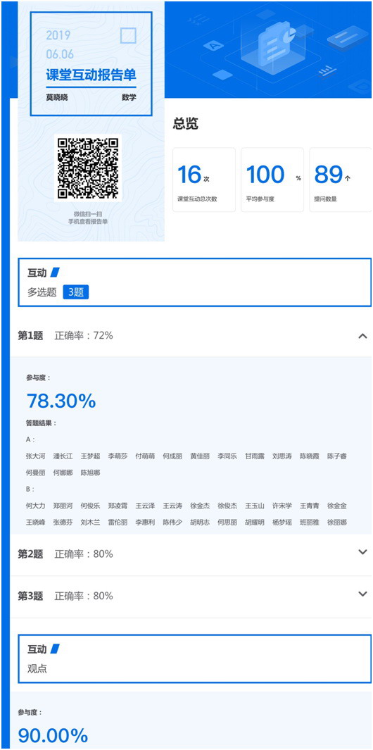 課后,老師可以一鍵掃碼,帶走課堂學(xué)情數(shù)據(jù),作為學(xué)生平時(shí)成績(jī)納入期末考核。