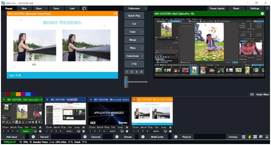 方案中,將PPT源、瀏覽器源等,統(tǒng)一轉(zhuǎn)成NDI信號源,在vMix的NDI源中,你將可以獲取同網(wǎng)段中的所有NDI®信號源。