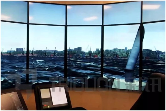 北京彩訊科技股份有限公司應(yīng)俄羅斯符拉迪沃斯托克某單位的邀請,參與設(shè)計制造這套360度航海模擬器全景可視化系統(tǒng)。航海模擬器采用當今各種先進的技術(shù)手段,如計算機成像、虛擬現(xiàn)實、動態(tài)分屏等手段,將數(shù)字化的港口和航行過程展現(xiàn)在操作員面前,提供了逼真的船舶駕駛臺演練環(huán)境,同時配合多自由度調(diào)整平臺,讓用戶真實地感受到海浪的起伏和航行中船舶轉(zhuǎn)向等真實傾斜效果,通過在安全環(huán)境下提供全任務(wù)模擬場景、演練,提高了學員對于典型和非典型事故的應(yīng)急處置能力,保障了生命和財產(chǎn)的安全。