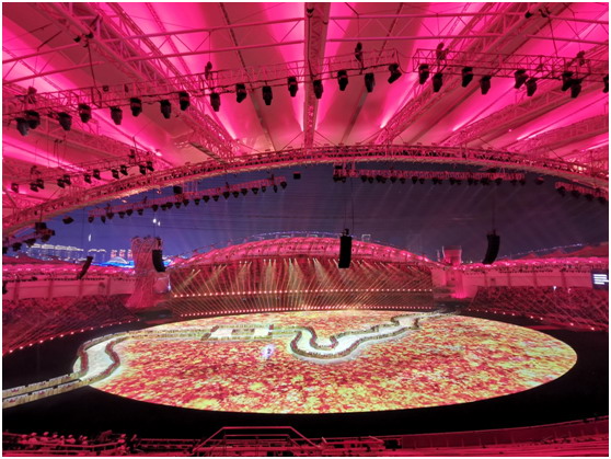 從開場的倒計(jì)時(shí)、歷屆軍運(yùn)會回顧到最后的文藝演出,這些都離不開高要求的投影技術(shù)。憑借雙色激光光源、4K超高清分辨率,巴可UDX-4K40圓滿完成了演出任務(wù)。